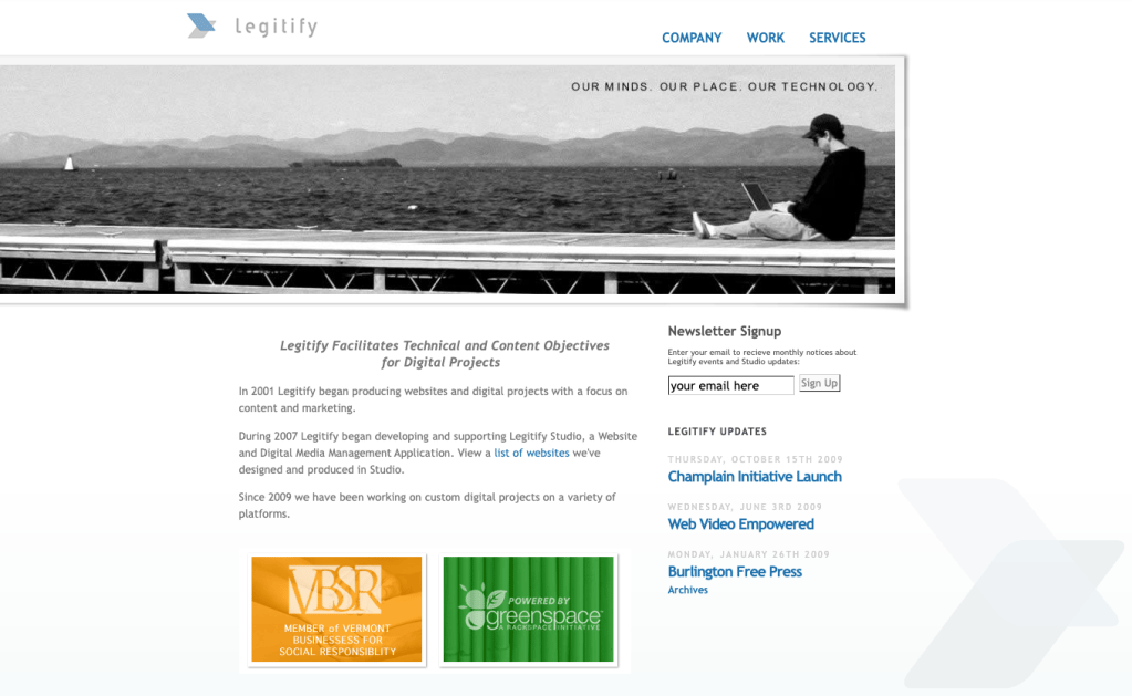 Legitify developed software and a hosted content management system called Legitify Studio, a website and digital media management application. Legitify designed and produced business websites in Legitify Studio for a range of industries including Real Estate, Action Sports, Film, Fitness, Food, Music, Venture Capital, and Non-Profit.